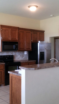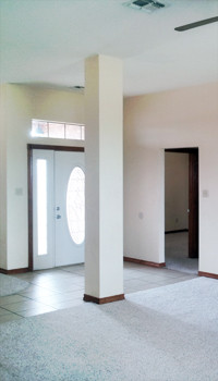 - Tile floors in high traffic areas. Carpeted bedrooms and living room.